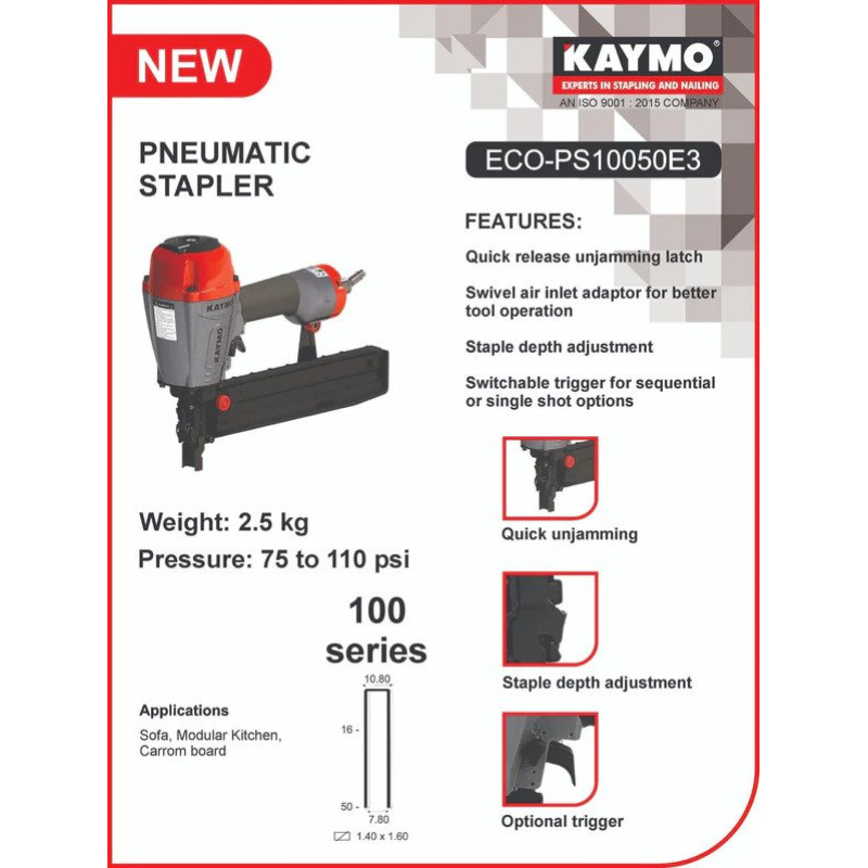 The Kaymo ECO10050E3 Pneumatic Stapler is a reliable and efficient tool designed for heavy-duty stapling applications. It is widely used in the sofa manufacturing industry and offers several notable features: